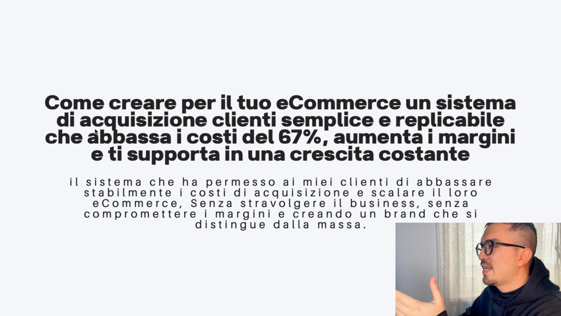 In questo video ti svelo il sistema che ha permesso ai miei clienti di abbassare stabilmente i costi di acquisizione e scalare il loro eCommerce... Senza stravolgere il business, senza compromettere i margini e creando un brand che si distingue dalla massa. Spero ti piaccia!